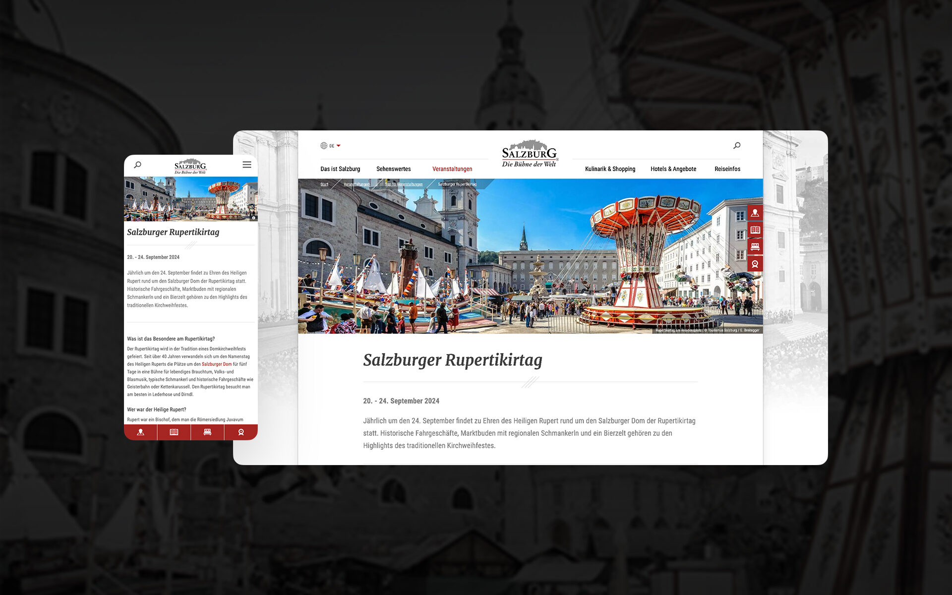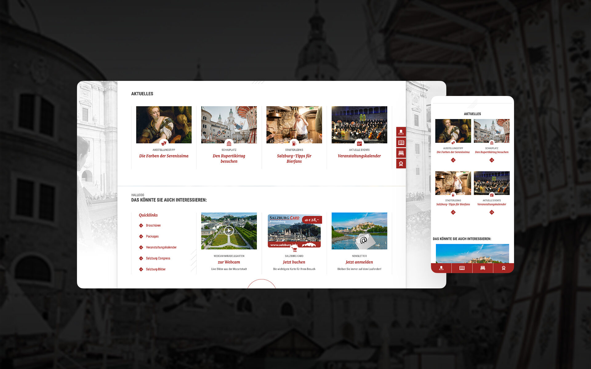Der umfangreich überarbeitete Inhalt bietet mit dem Salzburg Magazin spannende Einblicke abseits der üblichen Pfade. Zudem wurde ein online Buchungssystem für Reisebusse entwickelt, um den stetig zunehmenden Reisebusverkehr in klare Bahnen zu lenken.