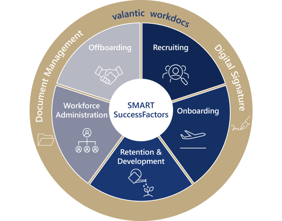 Die cloud-basierte Personalakte richtet sich an SAP SuccessFactors Employee Central Nutzer und ist mit einem Single Sign-On mit SAP SuccessFactors aufrufbar. Das cloudbasierte Dokumentenmanagementsystem valantic workdocs HR ermöglicht digitale und effiziente Verwaltung von Personaldokumenten, jederzeit und ortsunabhängig. Diese flexible Zugriffsmöglichkeit via Cloud-Infrastruktur ermöglicht schnellere Reaktionen auf Anfragen und revolutioniert die Arbeitsweise der HR-Abteilung. Relevante Informationen sind nur einen Klick entfernt und auch für berechtigte Mitarbeitende einsehbar. Neben der Speicherung und Verwaltung von Personalakten und Dokumenten bietet es ebenfalls eine umfassende Lösung für Genehmigungs- und Unterschriftenprozesse. Mit der digitalen Signatur können Dokumente rechtssicher online unterzeichnet werden können, ohne dass ein persönliches Treffen oder der Austausch von Papierdokumenten erforderlich sind. Damit werden Arbeitsabläufe optimiert, Zeit sowie Kosten eingespart und die Effizienz in jeder Personalabteilung erhöht. Die Sicherheit der hochsensiblen Daten im HR entspricht den höchsten Standards. valantic setzt hierfür auf moderne Verschlüsselungstechnologien, Zugriffskontrollen und die Protokollierung der Aktivitäten.