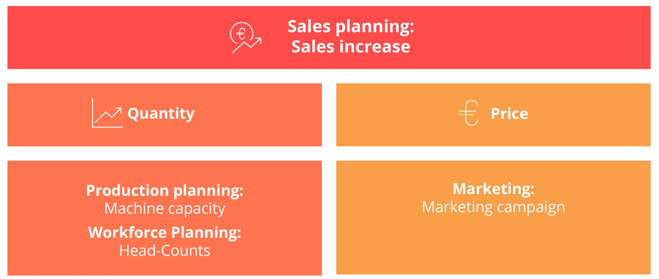 Company planning consists of many sub-plans such as cost center, project, and personnel planning. The sub-plans have to be coordinated organizationally and technically, for that’s the only way to create a harmonious overall plan. The first challenge is to identify dependencies and integrate all partial planning processes. This is the prerequisite for deriving the actions required to achieve the planning objectives.