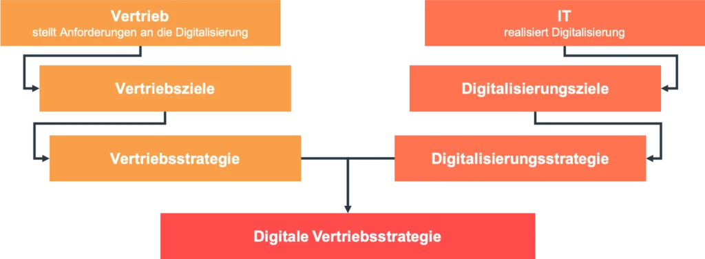 Beide Varianten für sich sind einseitig und führen zu Unzufriedenheit, Verweigerung oder gar Blockade auf der anderen Seite. Deshalb braucht es die digitale Vertriebsstrategie! Sie wird unter Einbeziehung von Vertrieb und IT erstellt und berücksichtigt beide Perspektiven. Denn eins ist klar: Weder „der Vertrieb“ noch „die IT“ sind pauschal unfähig, unwillig oder grundsätzlich überlastet. Sie haben schlichtweg eigene Prioritäten, eigene Ziele und verfolgen eine eigene Agenda.