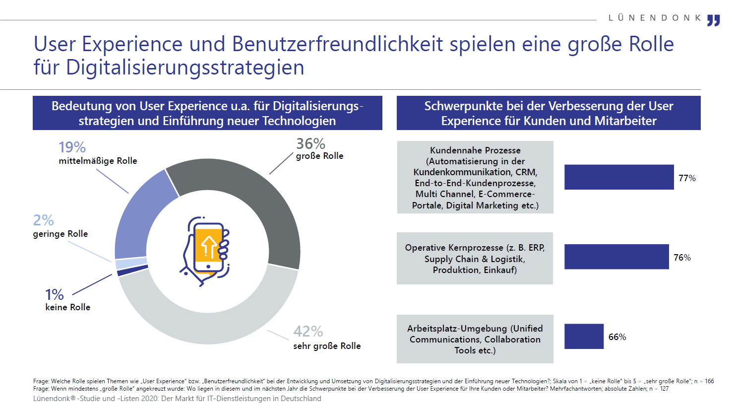 Für 78 Prozent der Unternehmen sind User Experience und Customer Experience die beiden Schlüsselfaktoren im E-Commerce und im Multi-Channel-Vertrieb. Sie entscheiden über Erfolg oder Misserfolg bei der Einführung neuer Portale und Technologien. Zu diesem Ergebnis kamen valantic und Lünendonk in einer Umfrage, die im Juli 2020 durchgeführt wurde.