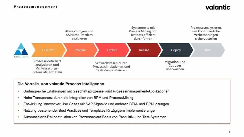 valantic besitzt umfassende Process Mining Expertise und Erfahrung aus zahlreichen Kundenprojekten. Wir arbeiten dabei mit den führenden Software-Tools, unter anderem mit SAP Signavio, und wählen bei unseren Projekten stets das Werkzeug aus, das sich am besten für die Anforderungen des jeweiligen Kunden eignet. Der Einsatz der Methode lohnt sich aus unserer Sicht gerade in großen SAP S/4HANA Einführungsprojekten auf jeden Fall. Angesichts der erheblichen Vorteile macht sich Process Mining auf ganzer Linie bezahlt.
