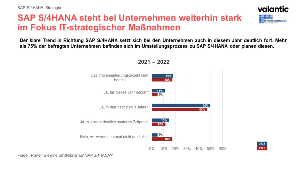 Im Markt ist damit eindeutig das Bewusstsein vorhanden, dass angesichts des Wartungsendes für ältere SAP ERP-Systeme im Jahr 2027 wenig zeitlicher Spielraum für den Umstieg bleibt. Der Mangel an verfügbaren IT-Fachkräften und externen Beratern für die Umsetzung kommt erschwerend hinzu.