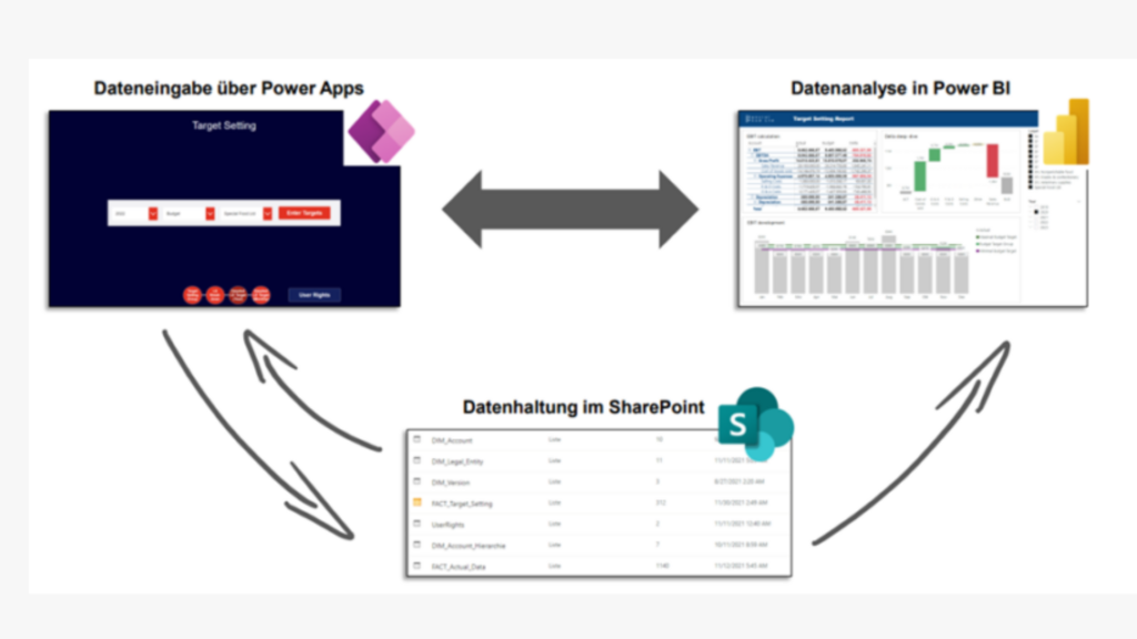 Häufig findet das Target Setting innerhalb der bereits genutzten Planungstools, wie z.B. CCH Tagetik, statt und wird direkt in die Finanzplanung integriert. Ist jedoch kein gesondertes Tool im Einsatz oder ist eine Integration nicht gewünscht, bietet Ihnen die Microsoft Power Platform eine Möglichkeit, den Prozess der Zielsetzung zu vereinfachen.
