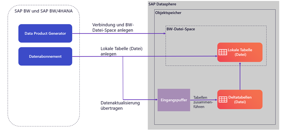 Im Rahmen der letzten Updates stellten wir den Objektspeicher vor. Dieser bietet die Möglichkeit Daten im Push-Verfahren direkt aus einem SAP BW oder SAP BW/4HANA zu erhalten. Wenn die benötigten Daten im Quellsystem enthalten sind, ist es nicht nötig diese per SAP Datasphere einzubinden. Sie können direkt in den Objektspeicher übertragen werden. Hierbei gibt es einige Einschränkungen. Unter anderem können Eigenschaften der vom SAP BW generierten lokalen Tabelle nicht verändert werden. Zudem ist die Delta-Erfassung vorab als aktiviert oder deaktiviert festgelegt und nicht veränderbar. Es werden bei deaktivierter Delta-Erfassung Snapshot-Versionen aufbewahrt.