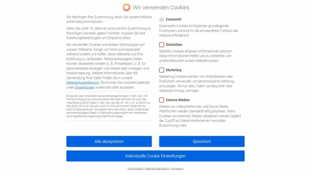 Enthält eine Website Inhalte von Drittanbietern, welche nicht für den Betrieb einer Website erforderlich sind (z. B. Marketing- oder Trackingdienste), muss von den Nutzer vorab eine Einwilligung zur Verarbeitung ihrer Daten durch jene Dienste eingeholt werden. Dies geschieht derzeitig mithilfe von Consent-Bannern, welche beim ersten Aufruf einer Website erscheinen: