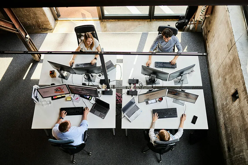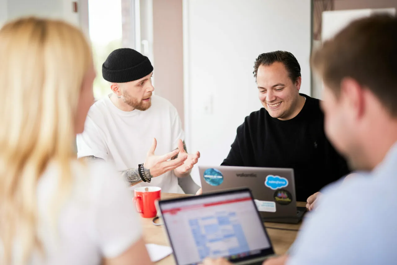 Wir sind ein bunter Haufen von Designer*innen, UX-Spezialist*innen, Consultants, Project Manager*innen, Frontend- und Backend-Entwickler*innen und Marketingspezialist*innen. Das gemeinsame Ziel: innovative und erfolgreiche Digital-Business-Projekte zusammen mit unseren Kunden umzusetzen.
