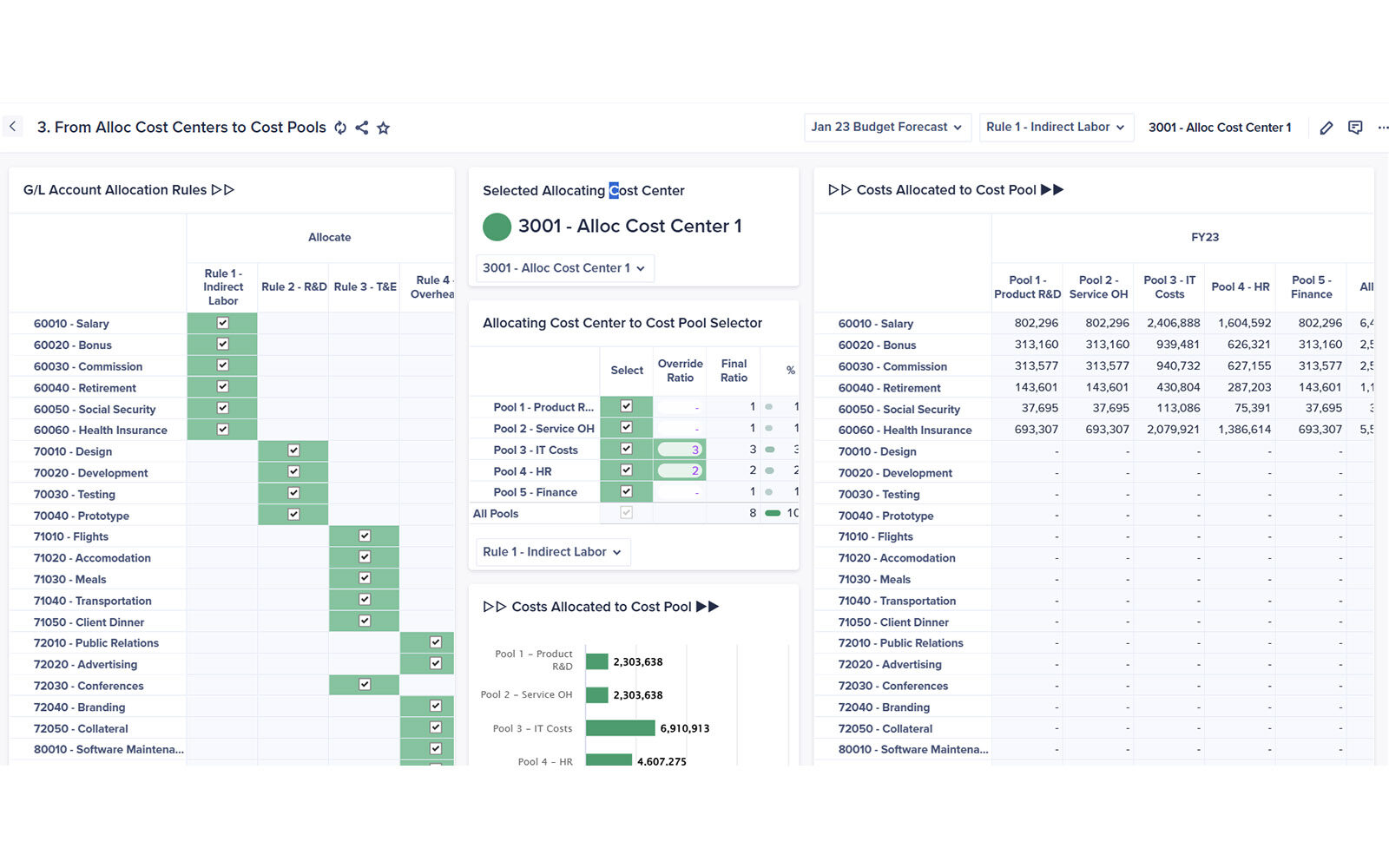 Verteilen Sie direkte und indirekte Kosten präzise über Abteilungen, Funktionen oder Geschäftseinheiten. Verwalten Sie Betriebskosten in Echtzeit, verbessern Sie die Transparenz und ermöglichen Sie die Budgetverantwortung im gesamten Unternehmen.