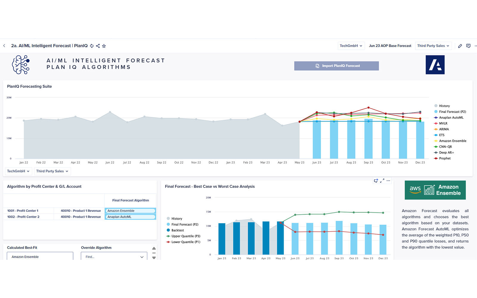 Nutzen Sie fortschrittliche statistische Methoden, einschließlich Regressionsanalysen, Zeitreihen und Machine Learning-Algorithmen, um genaue, datengetriebene Prognosen zu erstellen. Erkennen Sie automatisch Trends, Saisonalitäten und Anomalien in Einnahmen, Ausgaben und operativen Treibern. Die statistische Prognose von Anaplan ermöglicht es Finanzteams, Verzerrungen zu verringern, die Prognosegenauigkeit zu verbessern und schnell auf sich ändernde Geschäftsdynamiken mit Zuversicht zu reagieren. Integrierte Szenarioplanung und Übersteuerungsfunktionen gewährleisten Flexibilität, während Transparenz und Prüfspur erhalten bleiben.