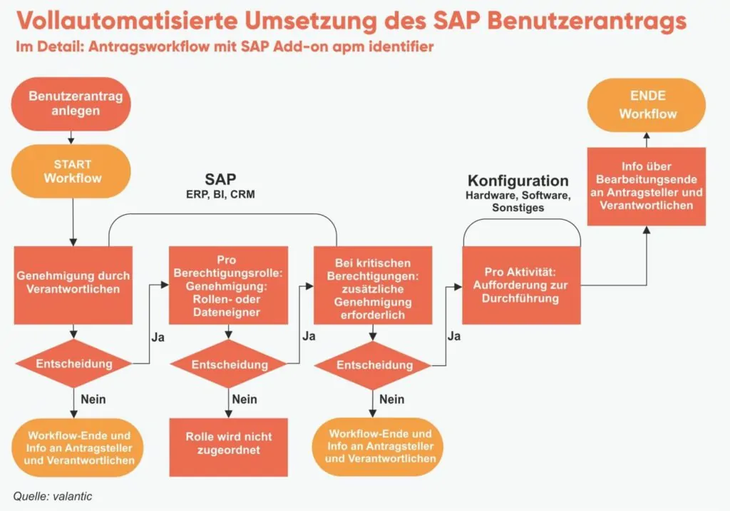 „Die GRC-Lösung apm atlantis von valantic haben wir bereits in unserem SAP ERP und im SAP CRM erfolgreich im Einsatz. Der Prozess des Benutzerantrags war im Laufe der Zeit bei uns historisch gewachsen, aber nie standardisiert worden“, erklärt Nils Meißner, Gruppenleiter Anwendungsberatung bei der RWZ. Die 13 Geschäftsbereiche mit sehr unterschiedlichen Anforderungen und eine entsprechende Auswahl an Rollen und Berechtigungen stellten zudem hohe Anforderungen an die Sachkenntnisse der Antragsteller und gestalteten das Ein- und Ausphasen von Mitarbeitern mitunter sehr zeitaufwändig. Eine komplexe und kostenintensive Identity-Management Software kam für die RWZ jedoch nicht in Frage. Die Genossenschaft wünschte sich eine schlanke Lösung, die den bestehenden Prozess weniger fehleranfällig machte, beschleunigte und für umfassende Transparenz sorgte. Da bei der RWZ die GRC-Lösung apm atlantis von valantic bereits sowohl im SAP ERP und im SAP CRM erfolgreich im Einsatz ist, wurde man auf die neue Erweiterung apm identifier für den Benutzerantrag in SAP aufmerksam.