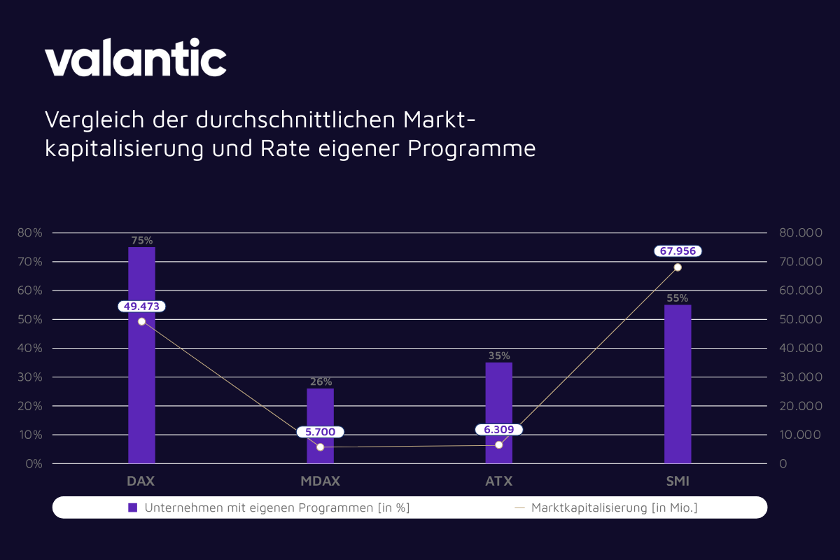 Grafik Startup- und Innovationsmonitor 2025: Vergleich der durchschnittlichen Marktkapitalisierung und Rate eigener Programme