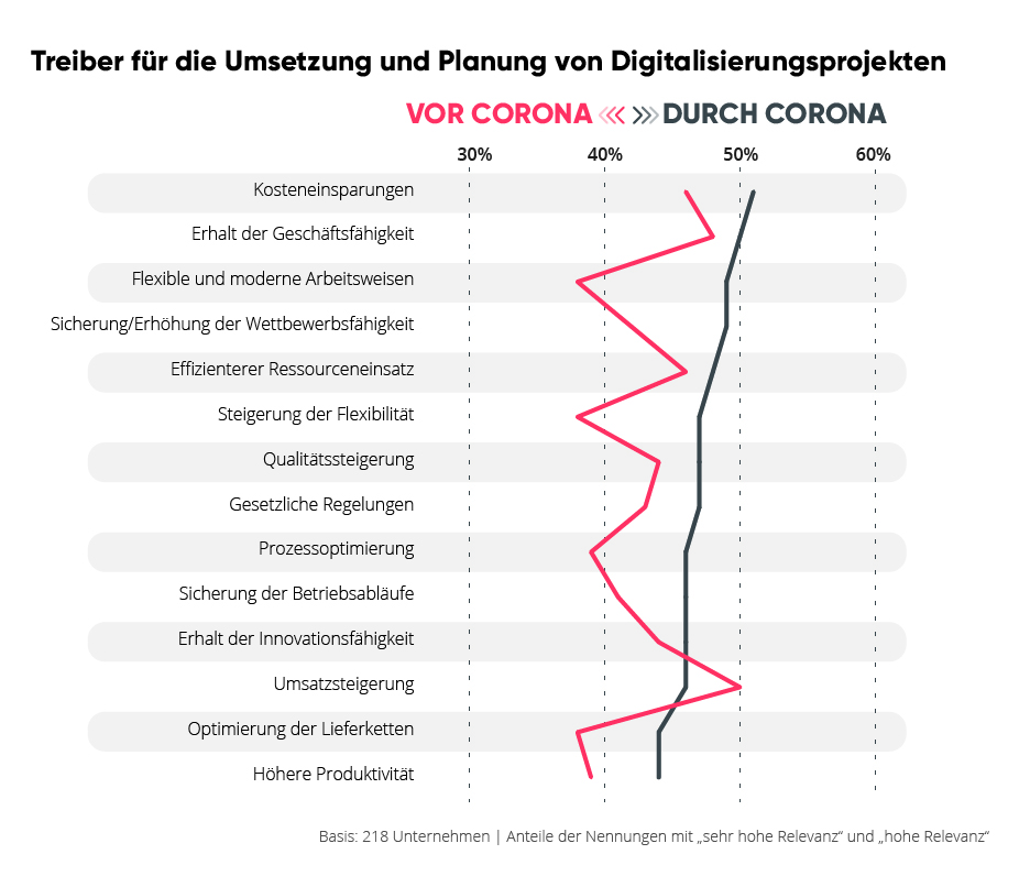 Treiber für die Umsatzung von Digitalisierungsprojekten vor und nach Corona