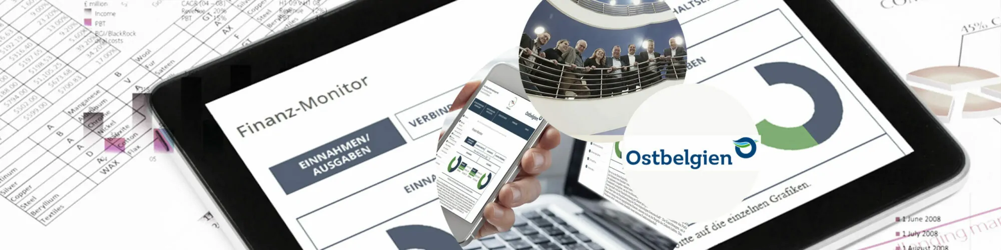 Das Ministerium hat klare Anforderungen an den Finanz-Monitor gestellt: intuitiv bedienbar, interaktiv, visuell ansprechend, responsiv, performant – und stets verfügbare, aktuelle Zahlen. Durch das Online-Tool sollten die aktuellen Haushaltszahlen – Einnahmen, Ausgaben, Verbindlichkeiten etc. – jederzeit und weltweit einsehbar sein. Damit wollte die Regierung der Deutschsprachigen Gemeinschaft maximale Transparenz für die Bürger schaffen.
