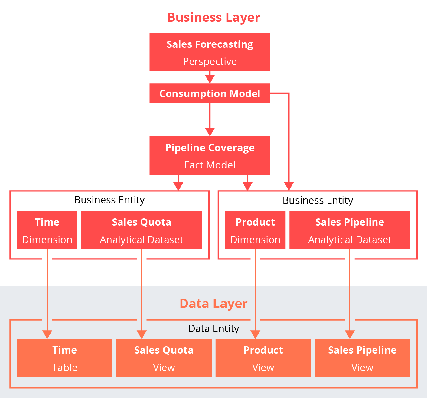 Die SAP Datasphere gibt dem Fachbereich die Möglichkeit eigene Datenmodelle auf der Basis von vormodellierten Modellen zu definieren. Eine Unterteilung in abgegrenzte Layer spielt hier eine entscheidende Rolle. Im Data Layer behält die IT die Hoheit über die Daten durch fundamentale Tabellen und Views. Auch können bestehende Modelle aus Quellsystemen integriert werden. Auf dieser Grundlage können dann Dimensionen, Faktenmodelle und Analytical Datasets im Business Layer erstellt werden. Durch ein Consumption Model können schlussendlich Analysen erstellt werden. Dabei werden die Artefakte durchgängig durch Berechtigungen geschützt.