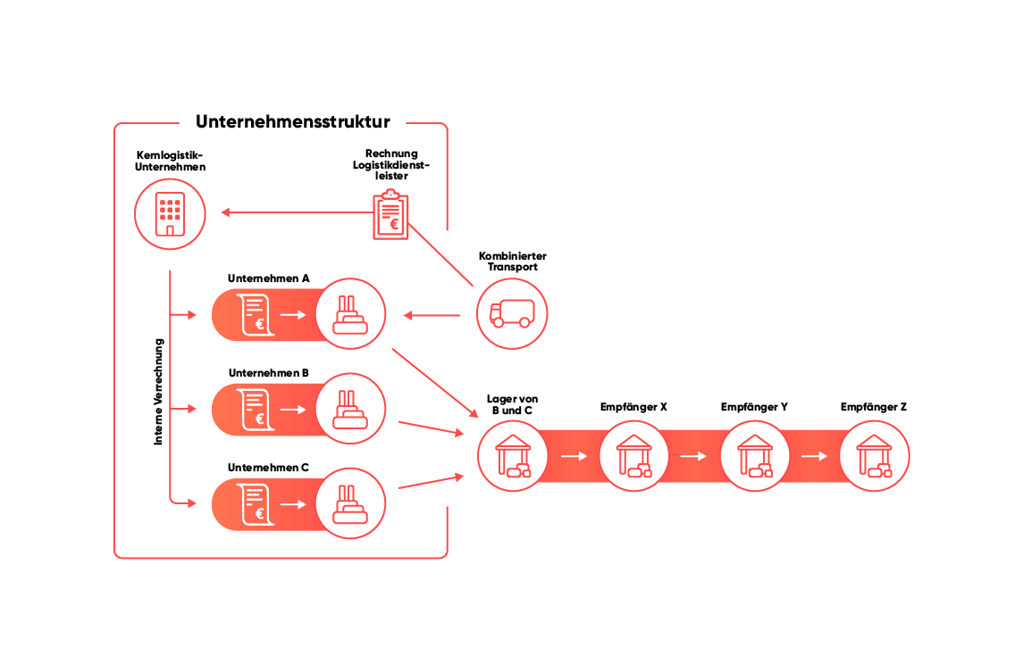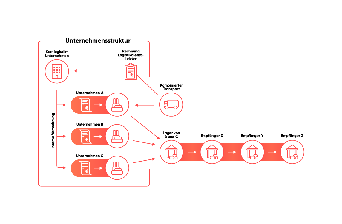 In der Praxis lassen sich dabei Szenarien abbilden, bei denen eine Transport- und Dispoabteilung zentral auf Konzernebene angesiedelt ist. Auch möglich ist, dass ein oder mehrere Tochterunternehmen Leistungen konzernweit übernehmen.