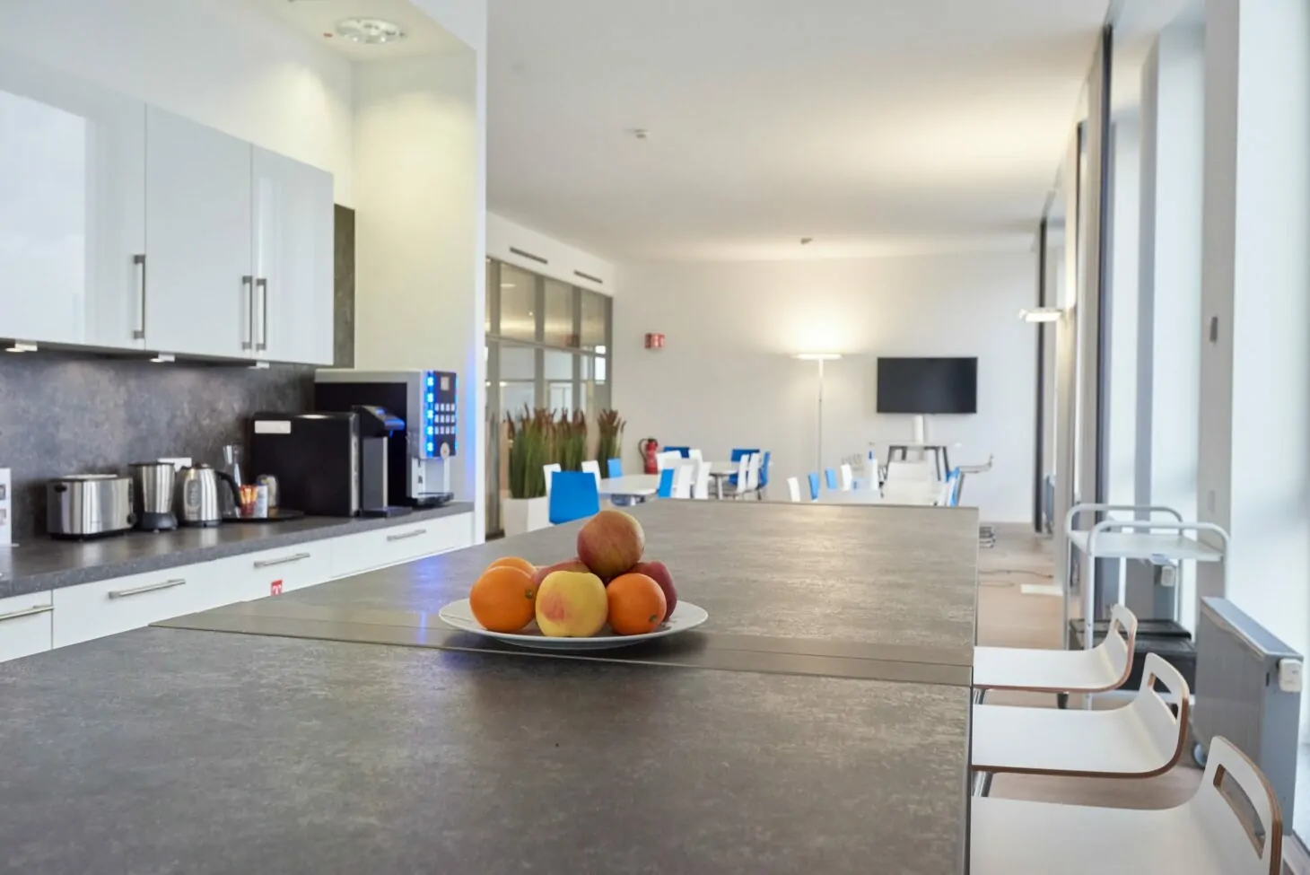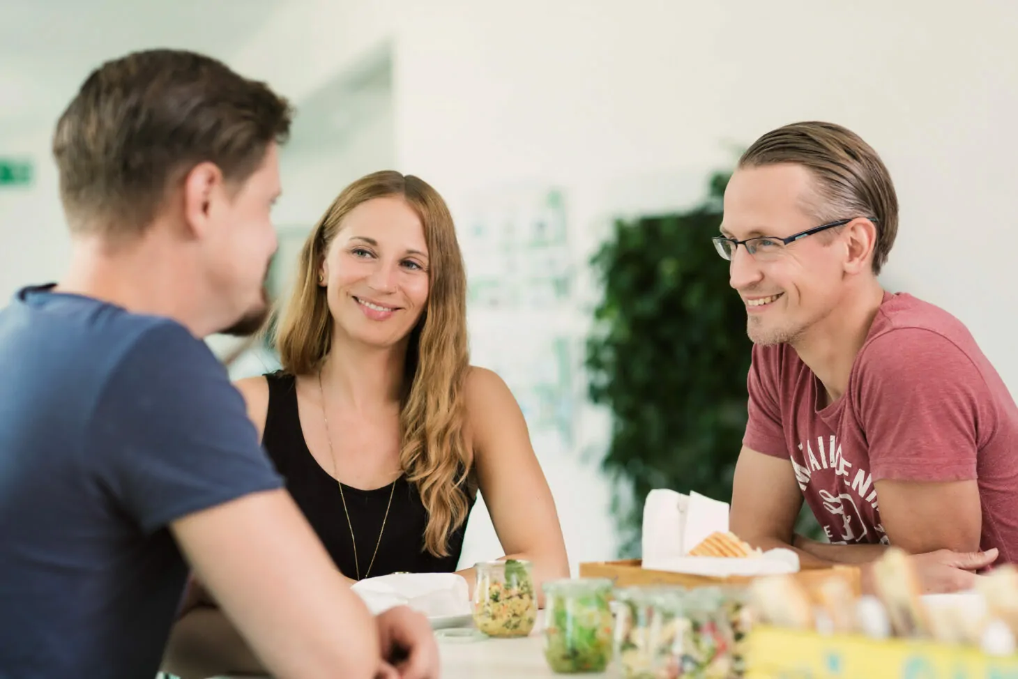 Beim Arbeiten genießen wir den Ausblick von den beiden oberen Stockwerken des modernen Schott-Solar-Gebäudes und lassen es uns dank zwei Discountern, Imbissen, Bäcker und Restaurants in unmittelbarer Nähe auch kulinarisch richtig gut gehen. Natürlich erreichst du die Hotspots der Stadt von unserem Büro aus mit Bus, Straßenbahn oder Rad in wenigen Minuten.