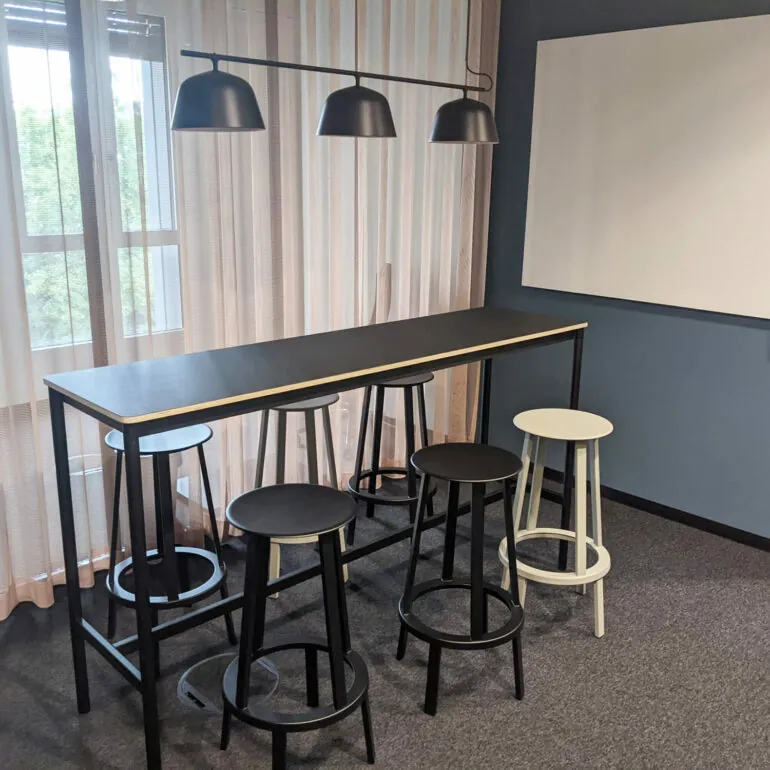 Konzipiert und realisiert wurde das stylisch-moderne Büro mit viel Raum für Begegnungen und als berufliche Heimat: Mit agilen Arbeitsplätzen, offenen und geschlossenen Flächen, höchsten ergonomischen Ansprüchen und mit viel überraschendem Lokalkolorit.