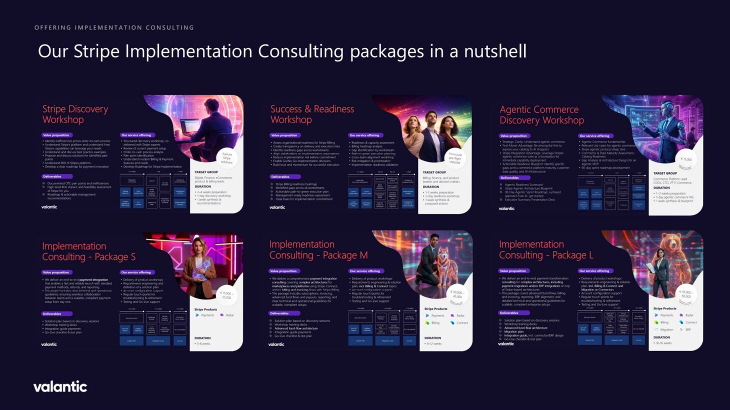 Maßgeschneiderte und vorgefertigte Stripe Product Workshops zur Entwicklung der Ziel-Lösung und Schulung von Teams.