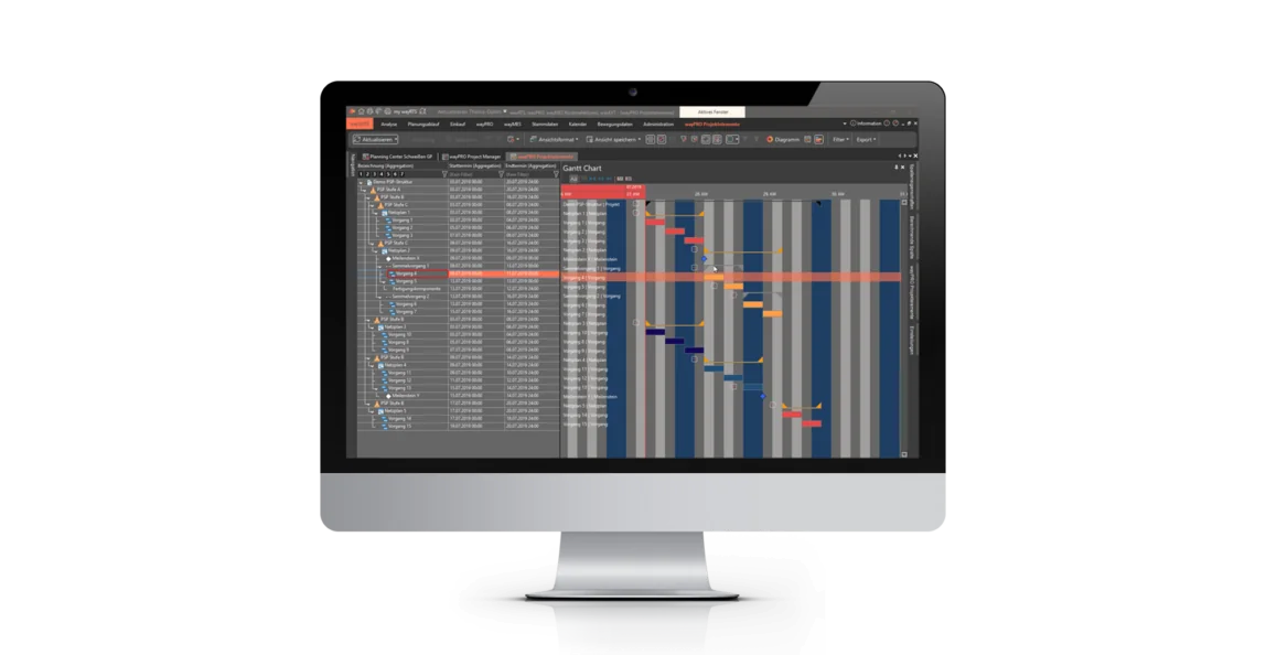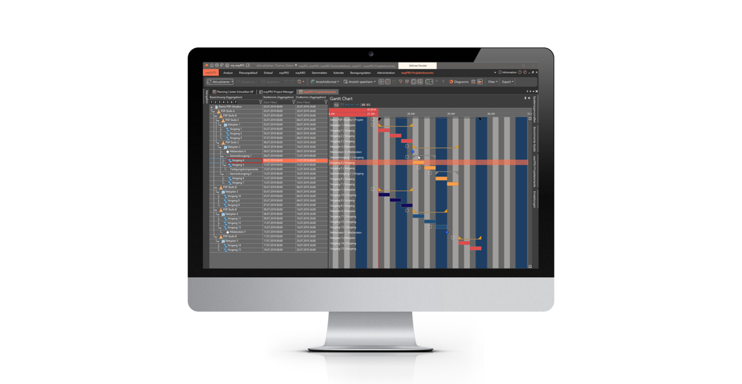 PPS-System waySuite im Maschinenbau: Projektstrukturplan mit Gantt Chart