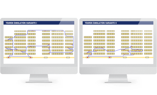 Im Rahmen einer ganzheitlichen Evaluierung von Prozessen und IT galt es, die aktuellen Lagerstrukturen und Bedienstrategien hinsichtlich ihrer Optimierungspotenziale zu analysieren. Nach einer detaillierten Ist-Analyse und Abbildung der Lagerkonfiguration konnten unterschiedliche Optimierungsszenarien, u. a. Lagertopologien und Bedienstrategien, in SAP EWM simuliert werden. Ein Teil der Optimierung stellte die Einlagerung nach Sortimentsverbund auf Basis einer Warenkorbanalyse dar. Als Ergebnis konnten die Lagerdichte sowie die Produktivität gesteigert werden.