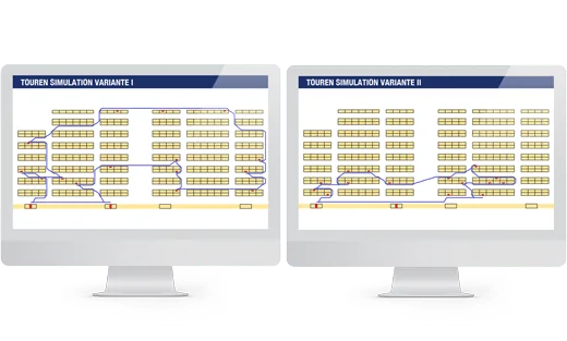Zu Beginn des Projektes erfolgte die Ist-Analyse mittels einer Wertstrombetrachtung der bestehenden Prozesse und Strukturen am aktuellen Standort. Die Materialflussanalyse offenbarte die Schwachstellen innerhalb der Prozesse bzw. der Strukturen, die anschließend geclustert und priorisiert wurden. In gemeinsamen Workshops mit dem Kunden konnten mehrere Szenarien in unterschiedlicher Granularität entwickelt, diskutiert, bewertet und verabschiedet werden. Ein modernes 2D / 3D Simulationstool sorgte für eine transparente Entscheidungsfindung und Visualisierung. Für den Kunden konnten so Reduzierungen des Umlaufbestands und der externen Transportkosten sowie eine Senkung der Durchlaufzeiten realisiert werden.