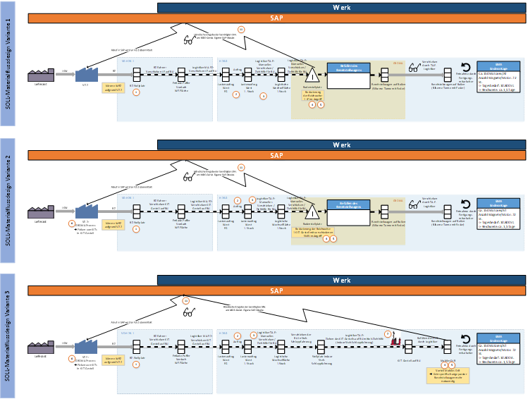 Der Fokus lag dabei auf den Veränderungen der Belieferungszeit, der Umstellung von einer LKW-Versorgung auf Routen- und Trailerzug und den daraus folgenden Anpassungen innerhalb der Übergabeflächen an den jeweiligen Produktionshallen. Diese Umstellung erfolgte zeitgleich zur Bereitstellung, sodass ausgewählte Materialien nicht mehr als komplette Ladeeinheit, sondern in Kleinladungsträgern transportiert wurden. Dadurch konnten zusätzliche Flächen innerhalb der Produktion gewonnen werden.