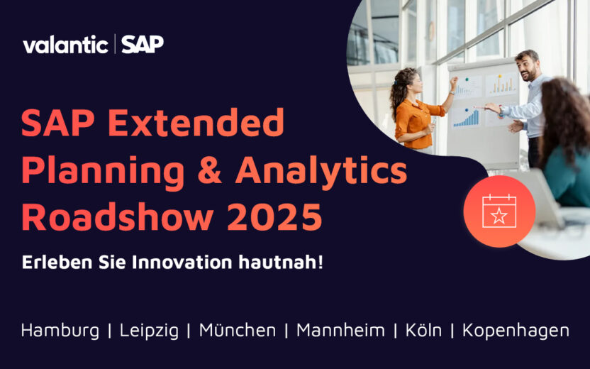 Erfahren Sie auf der SAP Extended Planning & Analytics Roadshow 2025, wie die Kombination von KI, SAP und valantic Ihnen helfen kann, einen digitalen Vorsprung im Markt zu erlangen und Ihre Wettbewerbsposition zu stärken.