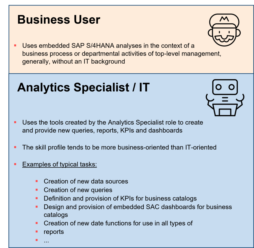 To summarize: SAP S/4HANA embedded analytics is primarily aimed at business users and analytics specialists. Where group-wide reporting or the preparation of figures in the form of dashboards or in digital boardrooms are required, SAC is the product of choice.