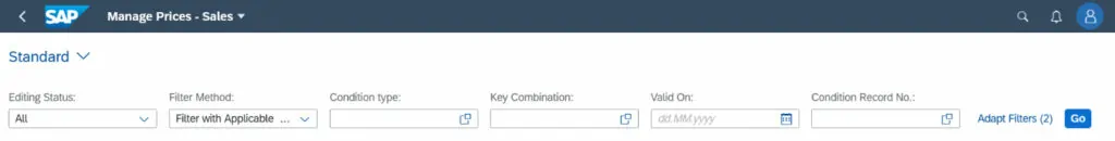 Entering and editing tax condition records via the app is not yet possible and this must continue to be done using the classic transactions. As an alternative, the Fiori app Set Material Prices – Sales is available additionally for this. An integration of the tax condition types would be desirable in future versions of an updated Manage Prices – Sales app.