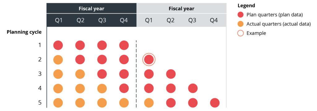 Ad-hoc forecasts are a way to respond to unforeseen changes in market conditions. However, ad hoc forecasts are often done outside the regulated planning process. A dynamic market environment requires an option integrated into the standard planning process to adjust the planned values based on current assumptions and actual data from previous weeks and months. In addition, the planning horizon for classic budget planning and ad hoc forecasts is usually fixed rigidly at the end of the planned fiscal year. Toward the end of a fiscal year, the specialist departments therefore lack the planning certainty to advance projects beyond the fiscal year in order to achieve medium-term goals.