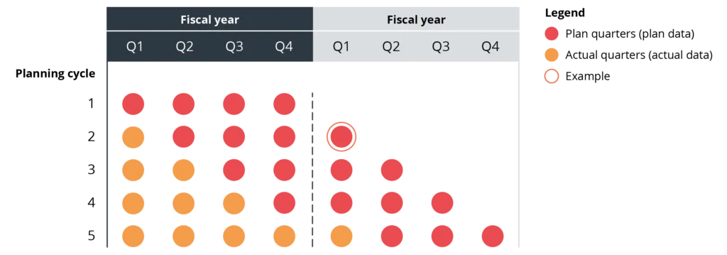 The rolling forecast offers an opportunity to adapt a company’s different planning areas to the challenges of our time. For example, while classic budgeting and out-of-process ad hoc forecasts usually do not go beyond the underlying planning year, the rolling forecast considers periods beyond the end of the year. As part of a quarterly rolling forecast, an initial set number of quarters is planned regardless of the fiscal year into which they fall. A recommendation for selecting planning intervals depends on the sector and dynamics of the market environment.