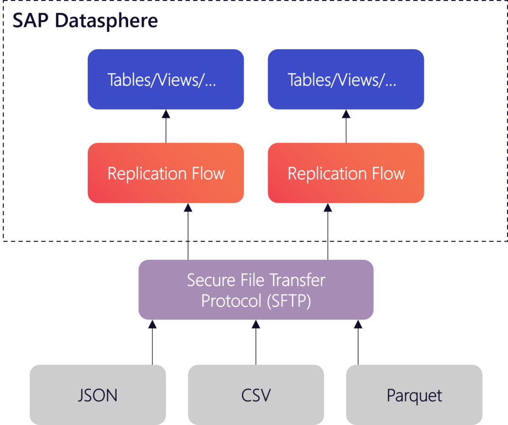 In addition, further updates have improved replication flows. It is now possible to define the Secure File Transfer Protocol (SFTP) as the destination for replication flows. SFTP is a widely used and secure transfer protocol that allows various file formats, such as JSON, CSV, and Parquet, to be integrated directly into SAP Datasphere or imported. Specific settings can be made for the respective formats, such as the definition of a separator for CSV files. This extension not only improves the connectivity of SAP Datasphere, but it also automates repetitive manual processes, such as importing files.