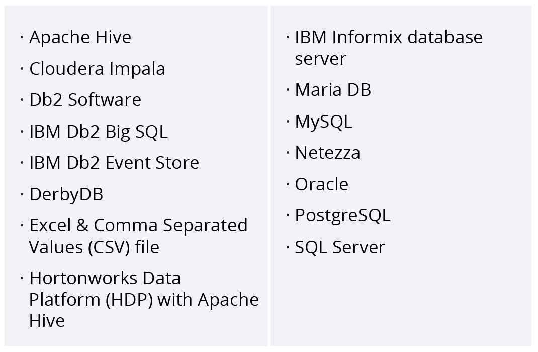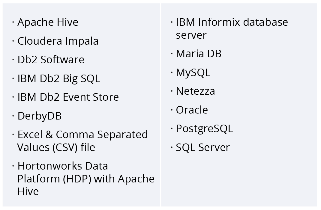 Data sources that IBM Cloud Pak for Data integrates with excellent performance thanks to its virtualization layer plus container without data migration: