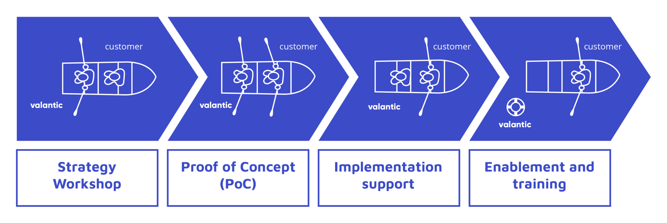 Implementation of a first, concrete application case within a few weeks – for a quick evaluation of benefits and feasibility. We provide the required software for the PoC period free of charge.