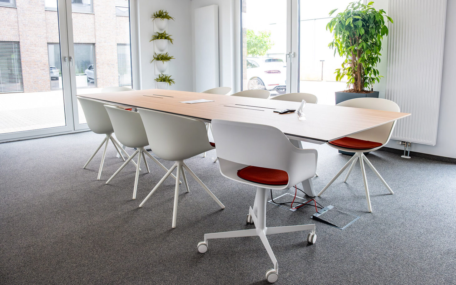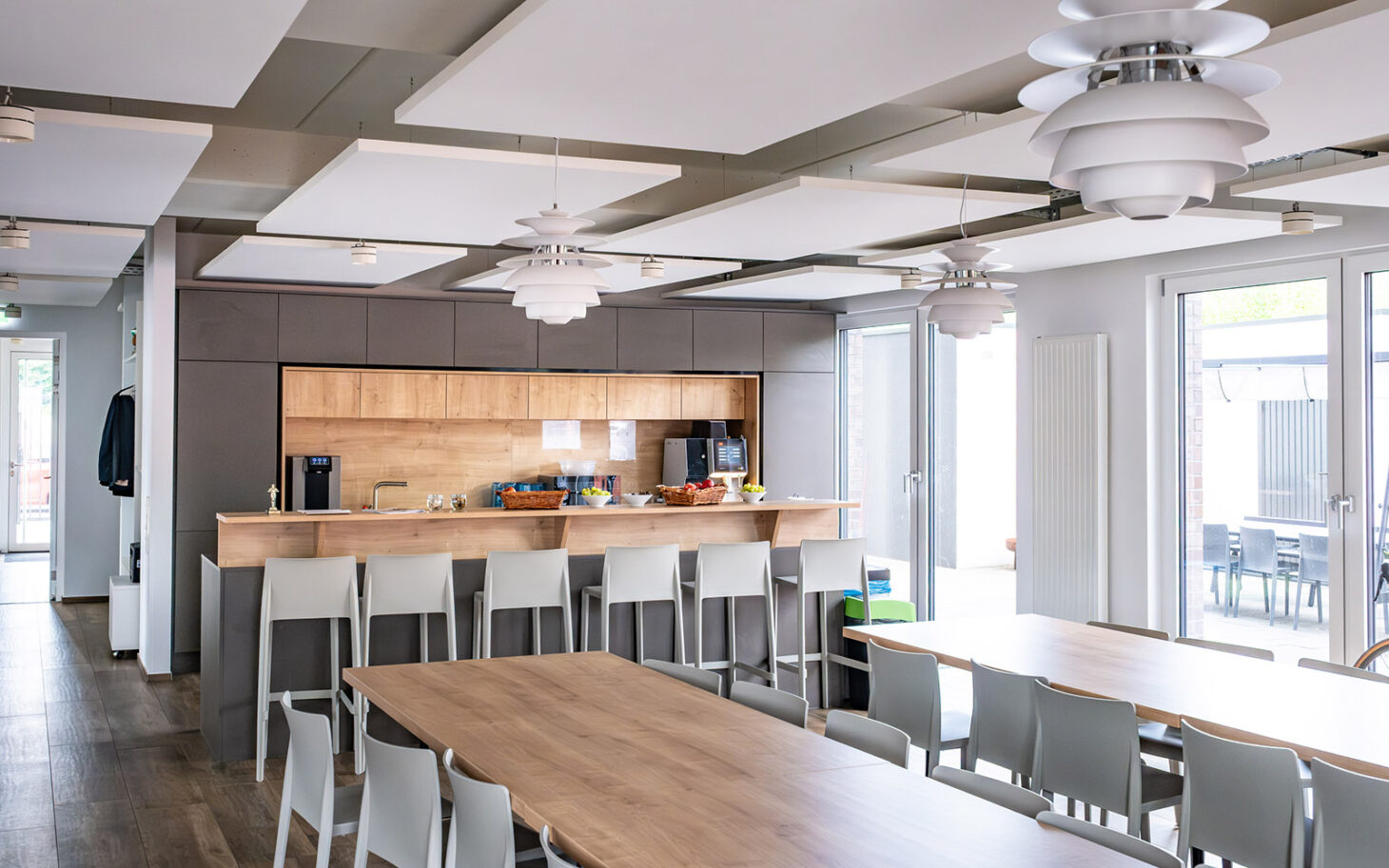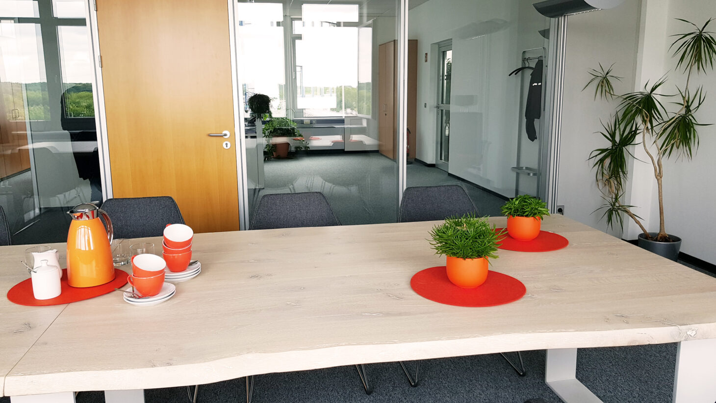 Lunch together in our large kitchen or meet at the coffee bar. The nearby Langenfeld water ski lake, a large facility with wakeboarding and water skiing, a standing wave, and a restaurant with a bar, is perfect for a walk in between or for a meeting after work – naturally, it’s best in the summer.