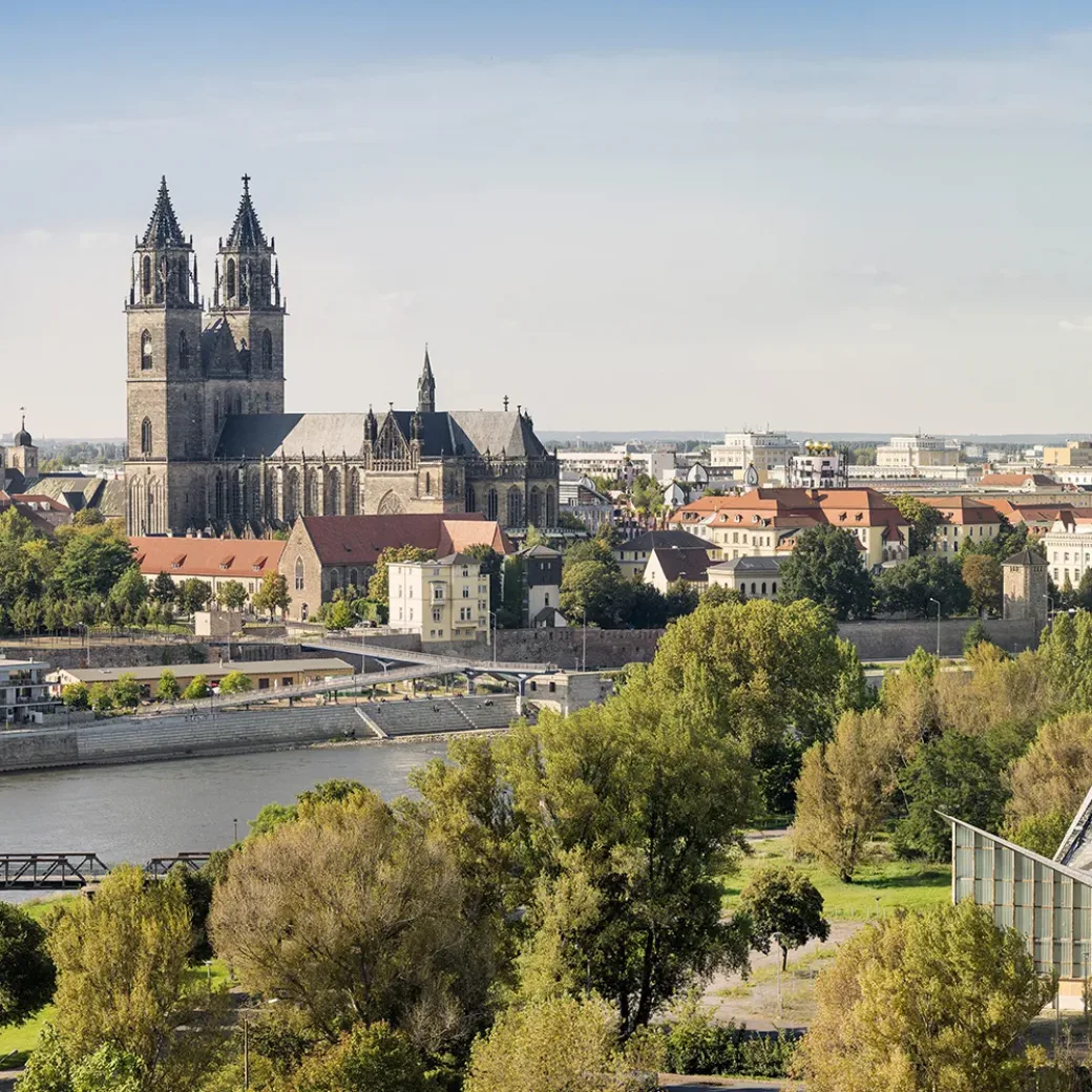 This is the first line of the Magdeburg song that children learn in day care and schools, and that fans of FC Magdeburg and SC Magdeburg like to sing. Because the green city on the Elbe has actually transformed itself. A wide variety of green spaces, parks, and meadows such as the Rotehornpark, which is on an island in the middle of the Elbe, invite people to relax, jog or grill together in the evenings. Culturally, Magdeburg has Germany’s oldest Gothic building in the Cathedral; with the Romanesque cloister and many other cultural institutions and student initiatives, it has a lot to offer.