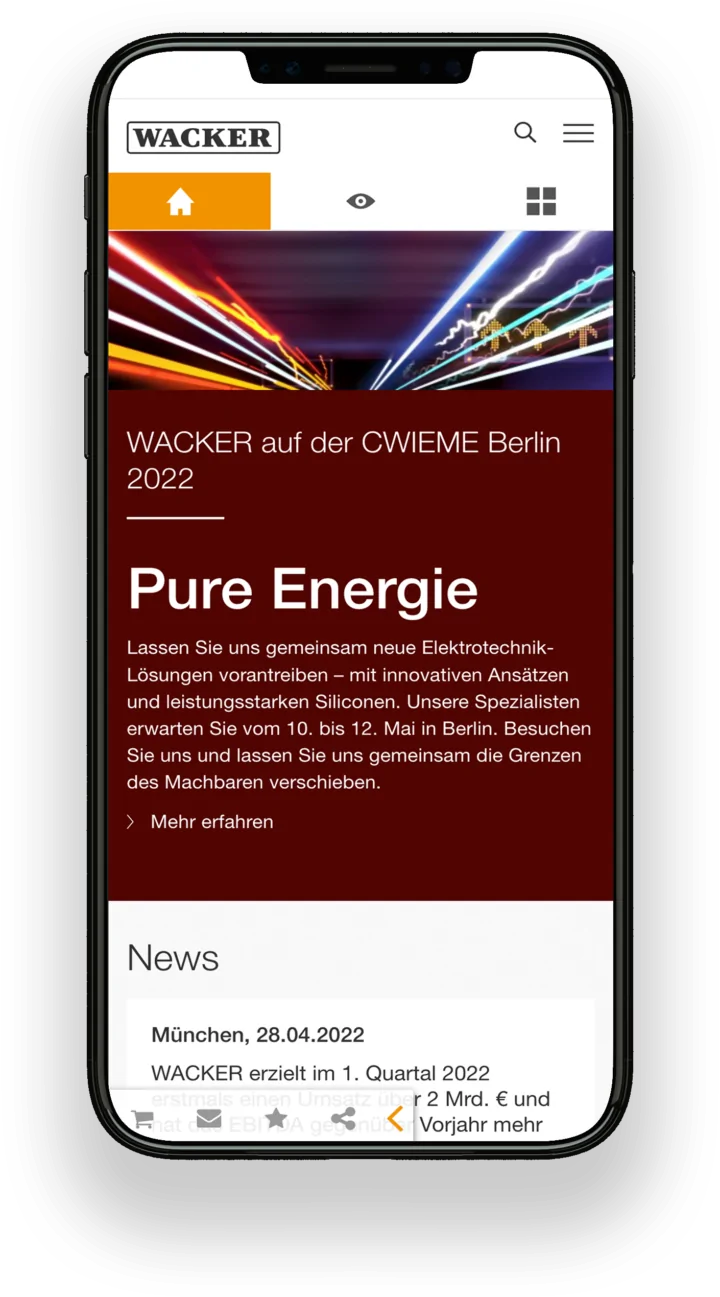 WACKER’s customer portal and web shop were based on ideas and technologies that were in the process of becoming obsolete and required state-of-the-art modernization. WACKER decided to focus more on individual customer needs – and thus create a new and improved customer experience.