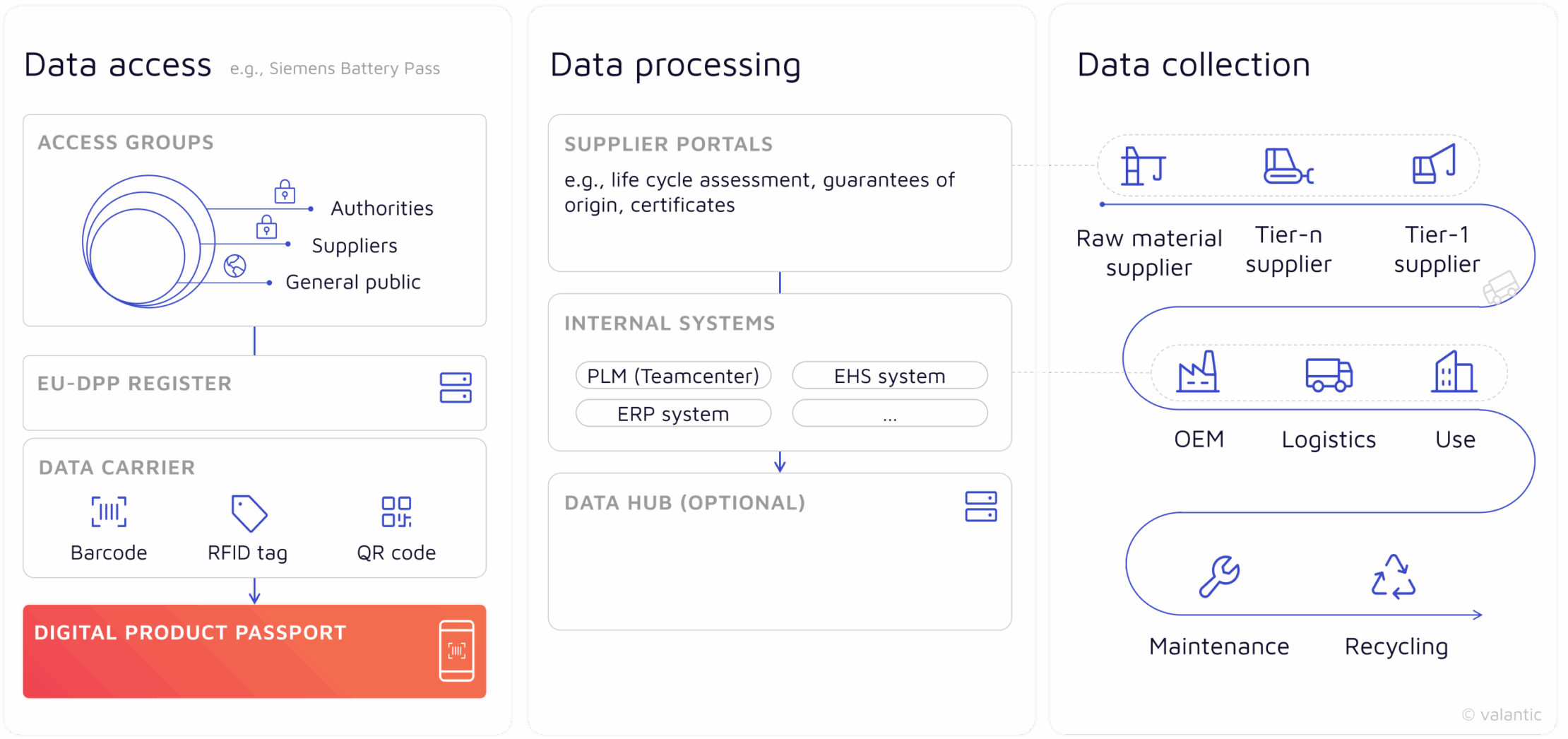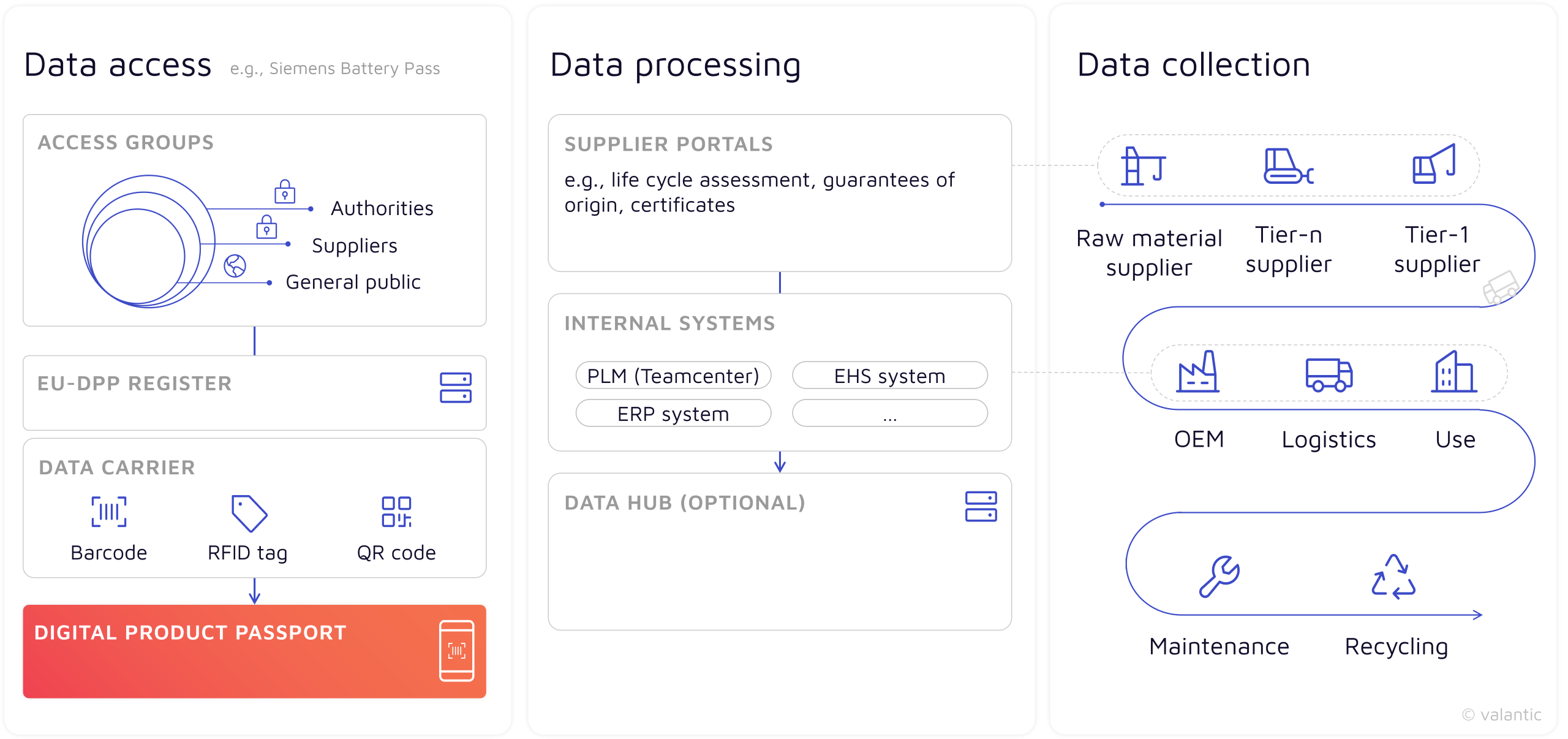 The DPP is not a standalone sustainability or IT topic. Its requirements sit at the intersection of regulation, data, processes, and technology – and this is exactly where valantic adds value.