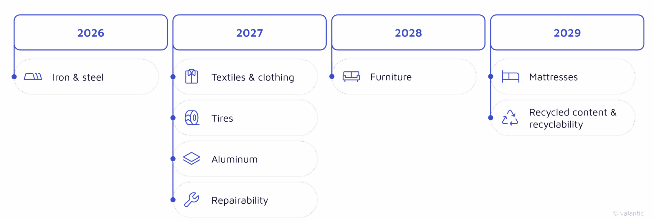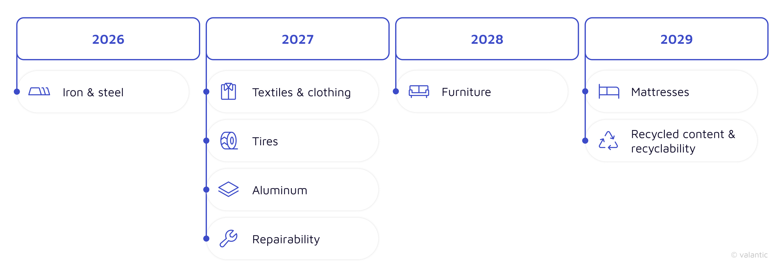 The DPP will be introduced gradually through delegated acts, either at the level of individual products or across entire groups of comparable products. An initial work plan defines six product groups as well as two horizontal requirements, all of which are to be implemented by 2030.