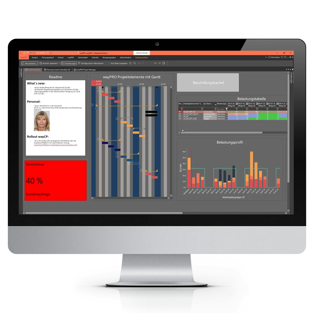With its interactive multi-project planning tool wayPRO within the waySuite, you can keep an eye on the entire value chain with deadlines and capacities.