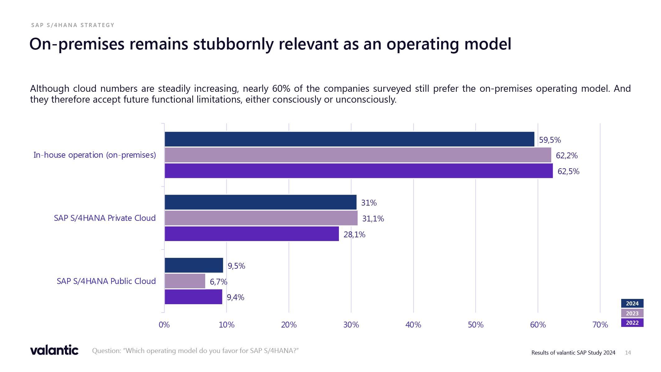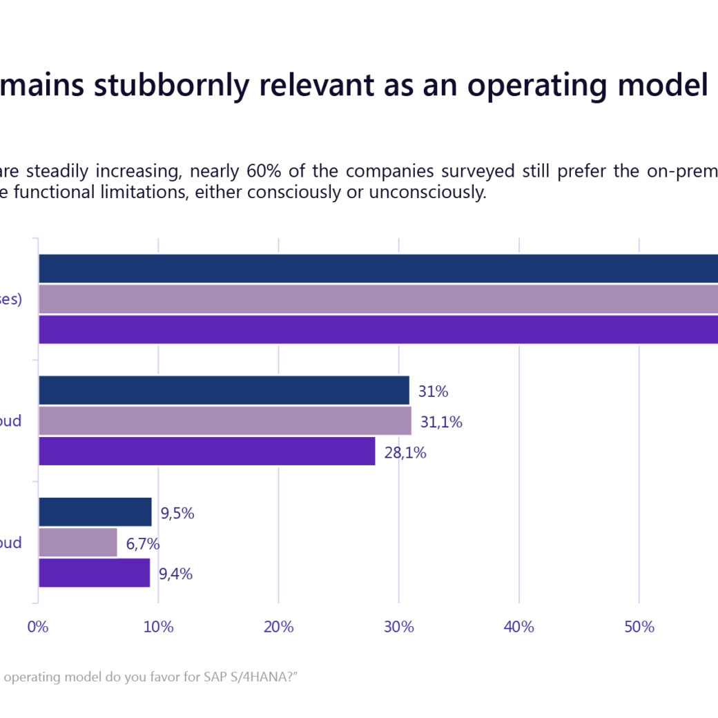 Almost 60 percent of respondents still favor on-premise as an operating model for SAP S/4HANA.