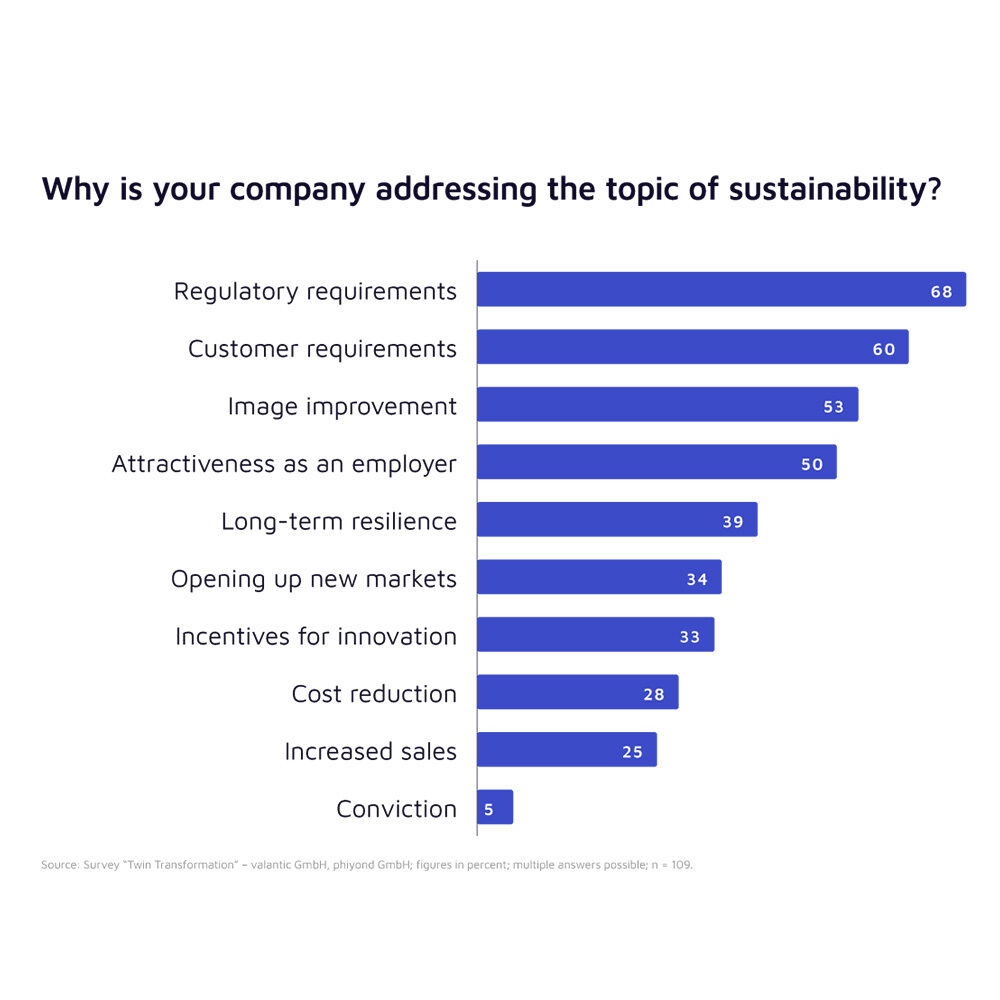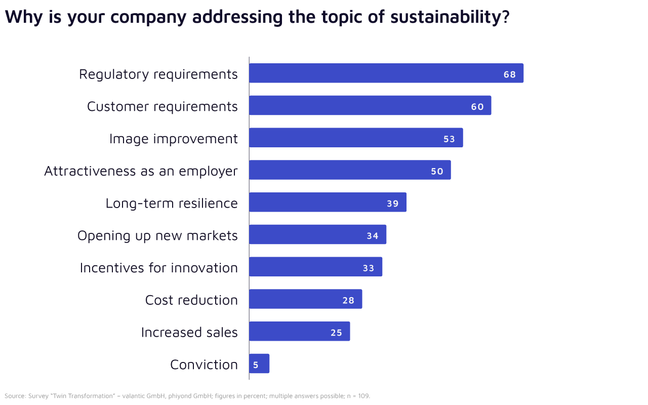 Munich / Berlin, June 12, 2025: phiyond GmbH and valantic GmbH have released a comprehensive new study on the topic of Twin Transformation (available in German only), providing an overview of how companies in the DACH region are approaching the dual challenge of digital and sustainable transformation. Based on an online survey of 109 executives, 11 expert interviews, and 13 case studies, the analysis provides practical insights into the challenges and opportunities of the so-called twin transformation in real-world corporate practice.