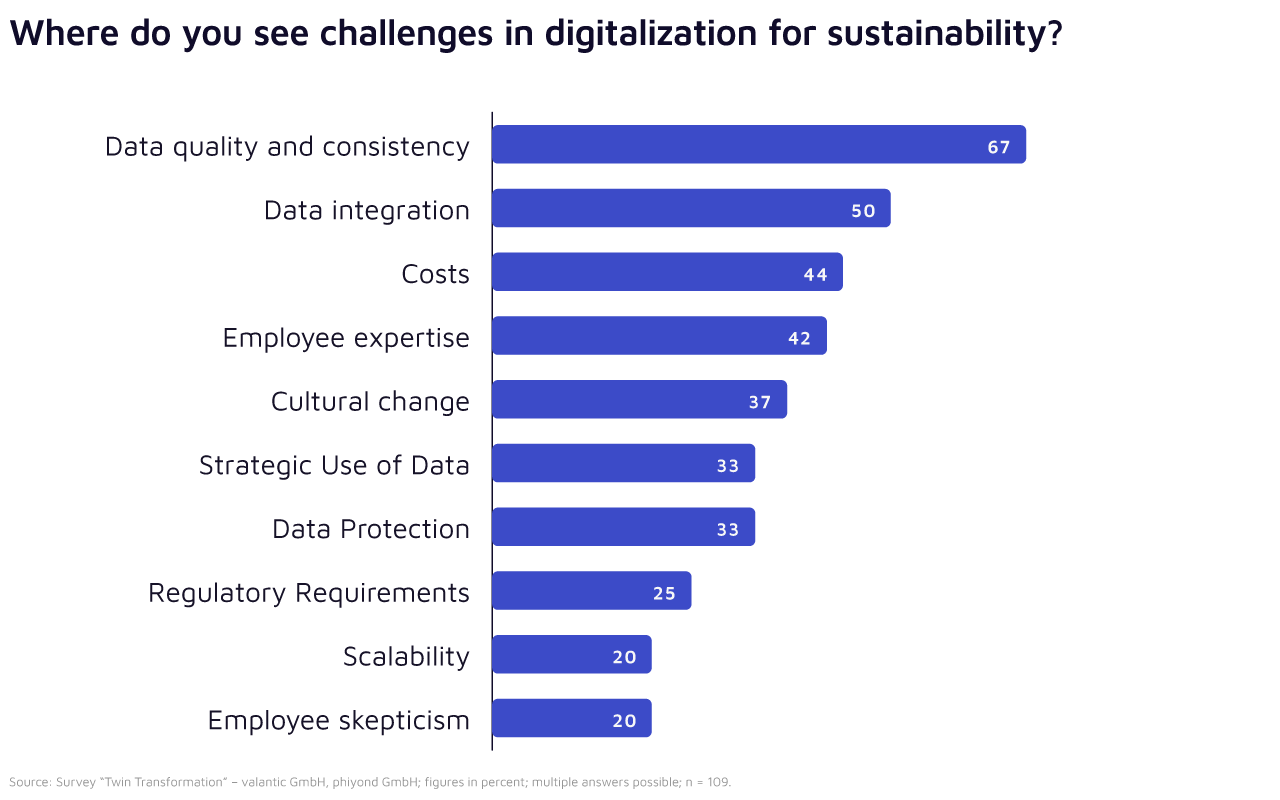 While many companies now collect relevant ESG data, especially on emissions, supply chains, and energy consumption, this information often remains fragmented across different tools and systems. An end-to-end, strategic approach to data management is still rare, with just 1% of companies reporting the implementation of a fully automated ESG data architecture. Without a consolidated and integrated data foundation, managing sustainability goals remains inefficient and resource- and cost-intensive.