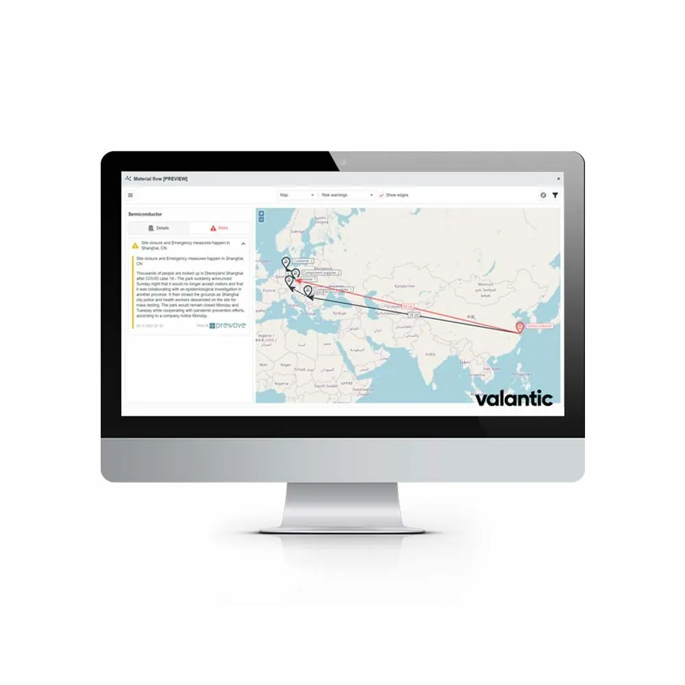 Always keep an eye on your supply chains: Cooperation between valantic and Prewave enables the linking of material flow and risk information.