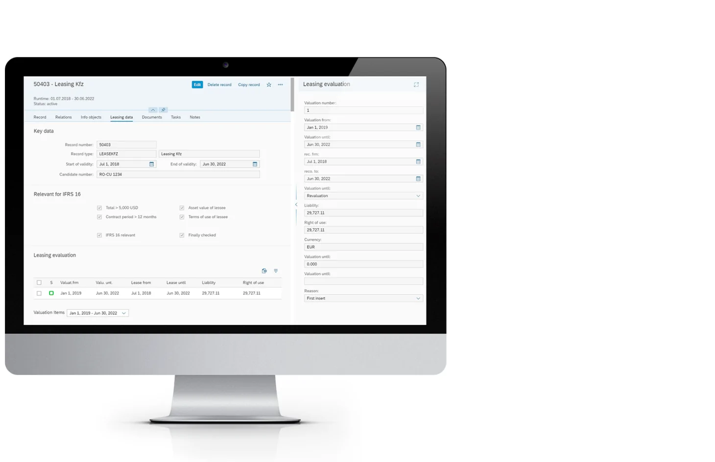 cuContract Leasing allows you to manage all leasing contracts during their entire life cycle for balance sheets in compliance with IFRS (International Financial Reporting Standards) in SAP.