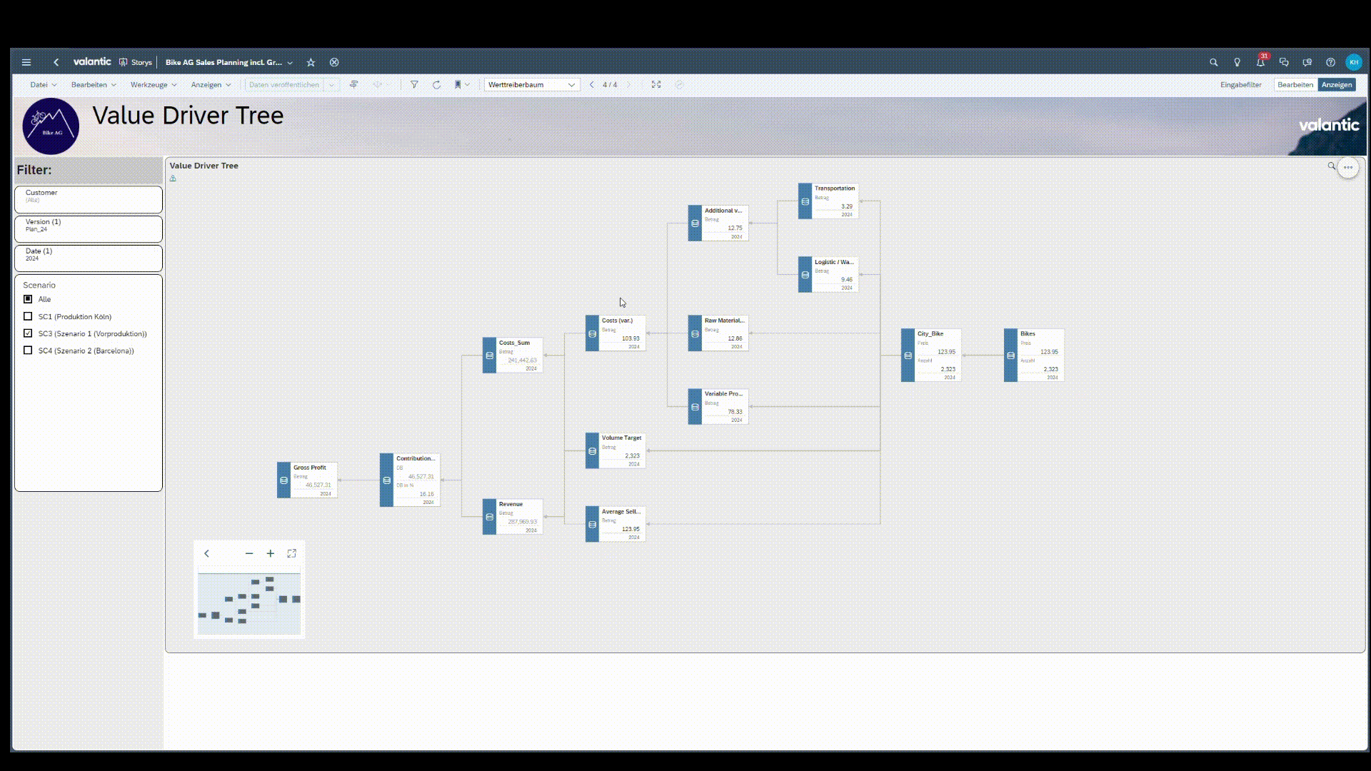 Value driver trees enable relationships between variables and thus, for example, to visualize main and subgoals with your individual factors. They also support simulations.