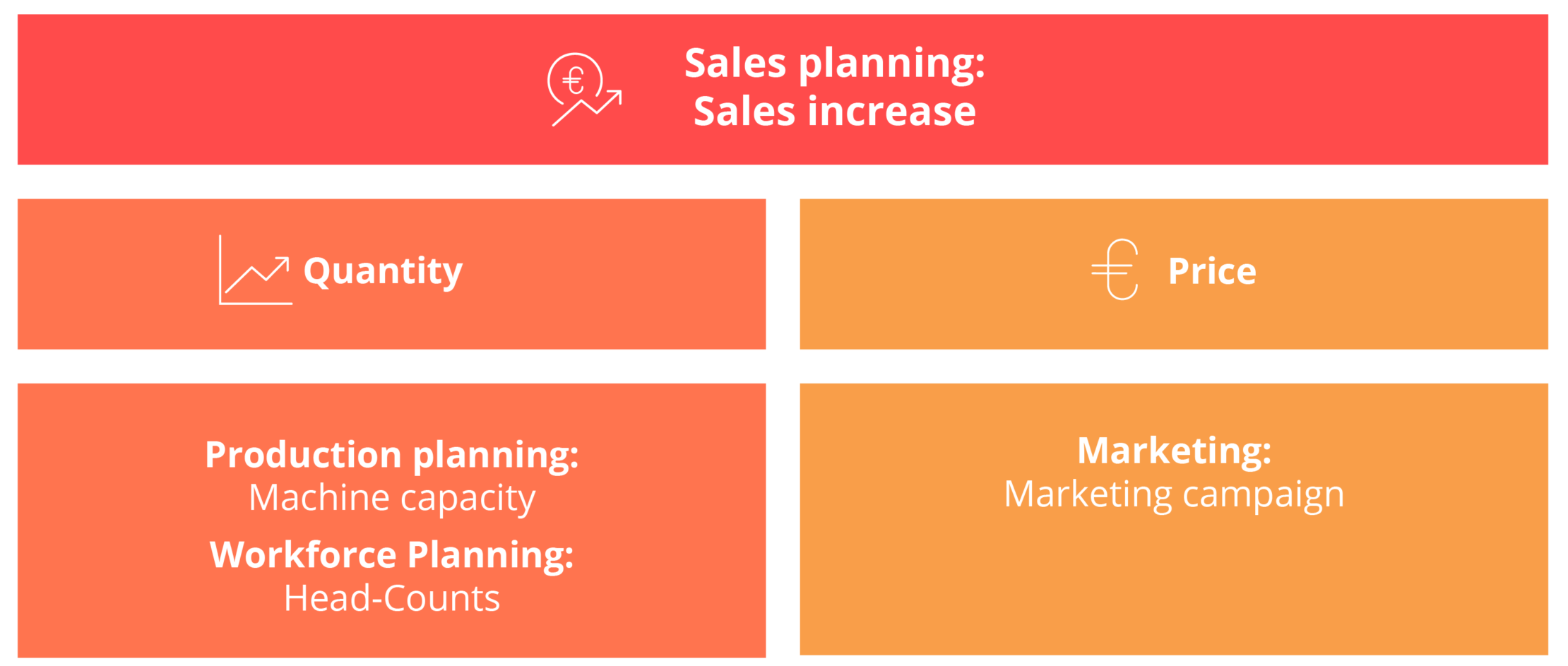 Company planning consists of many sub-plans such as cost center, project, and personnel planning. The sub-plans have to be coordinated organizationally and technically, for that’s the only way to create a harmonious overall plan. The first challenge is to identify dependencies and integrate all partial planning processes. This is the prerequisite for deriving the actions required to achieve the planning objectives.