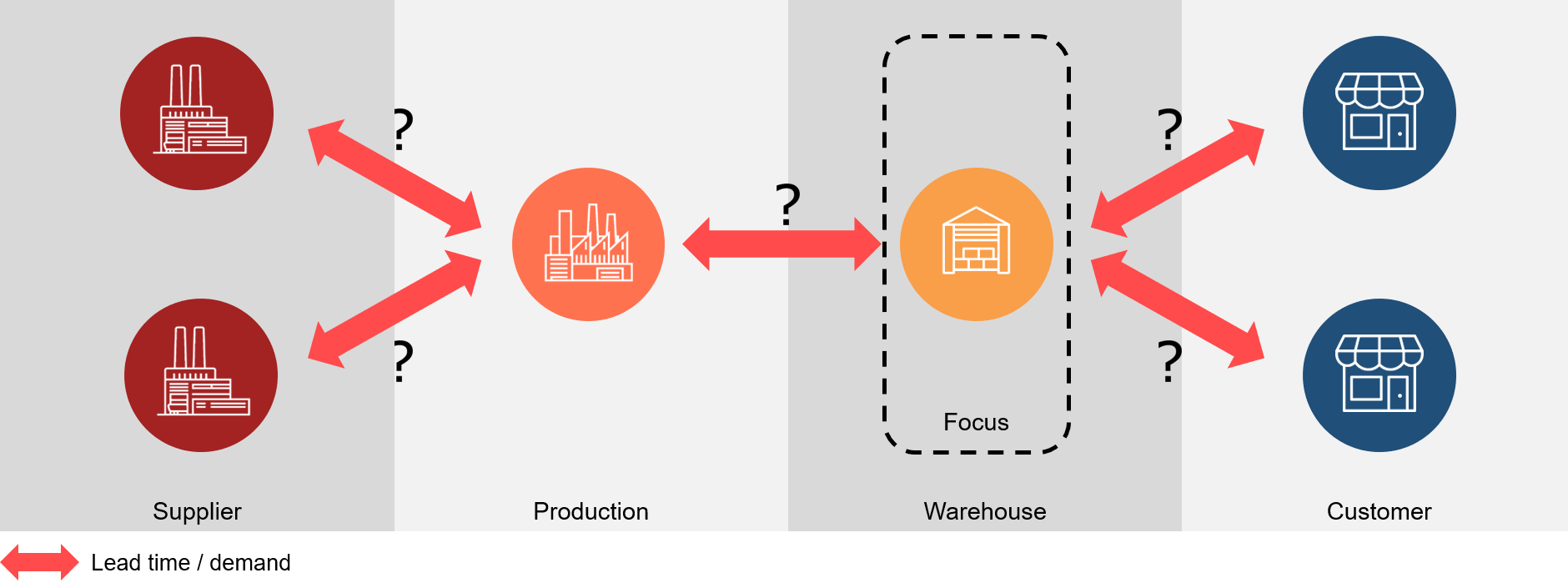 Optimal inventories differ sharply depending on the industry and company. Low inventory levels with the highest possible level of service represents a competitive advantage that cannot be underestimated. Here, it is important for companies to keep inventories as low as possible and to sell them as quickly as possible. Due to the much shorter planning intervals and number of warehouse locations within the whole supply chain, already-low demand fluctuations can have an enormous influence on warehouse inventories, which is reflected in the so-called “bull-whip effect.” This effect tempts many companies to make greater changes to inventories than are actually necessary and poses the challenge of fulfilling customer demand at the lowest possible cost in many industries. In inventory optimization, there is a distinction between single-level and multi-level optimization.