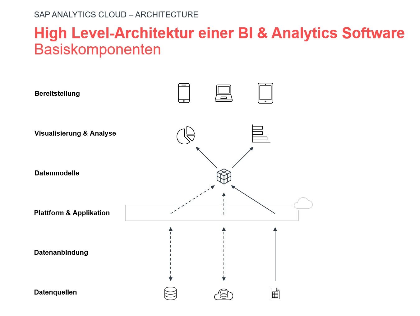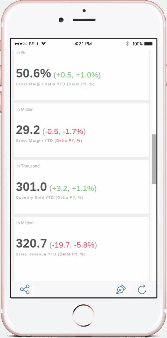 Con SAP Analytics Cloud, aumentarás la madurez de tu inteligencia empresarial. Gracias a la conexión en directo, obtendrás tus cifras en tiempo real y podrás analizar los datos importados con un alto rendimiento gracias a la tecnología in-memory de la plataforma HANA. En la visualización, puedes compartir cuadros de mando sencillos, utilizar estándares como IBCS o crear y personalizar tus propias aplicaciones con el Diseñador de aplicaciones. Además, con Smart Insights y Smart Discovery, hay disponibles varias funciones de aprendizaje automático, que proporcionan análisis adicionales.