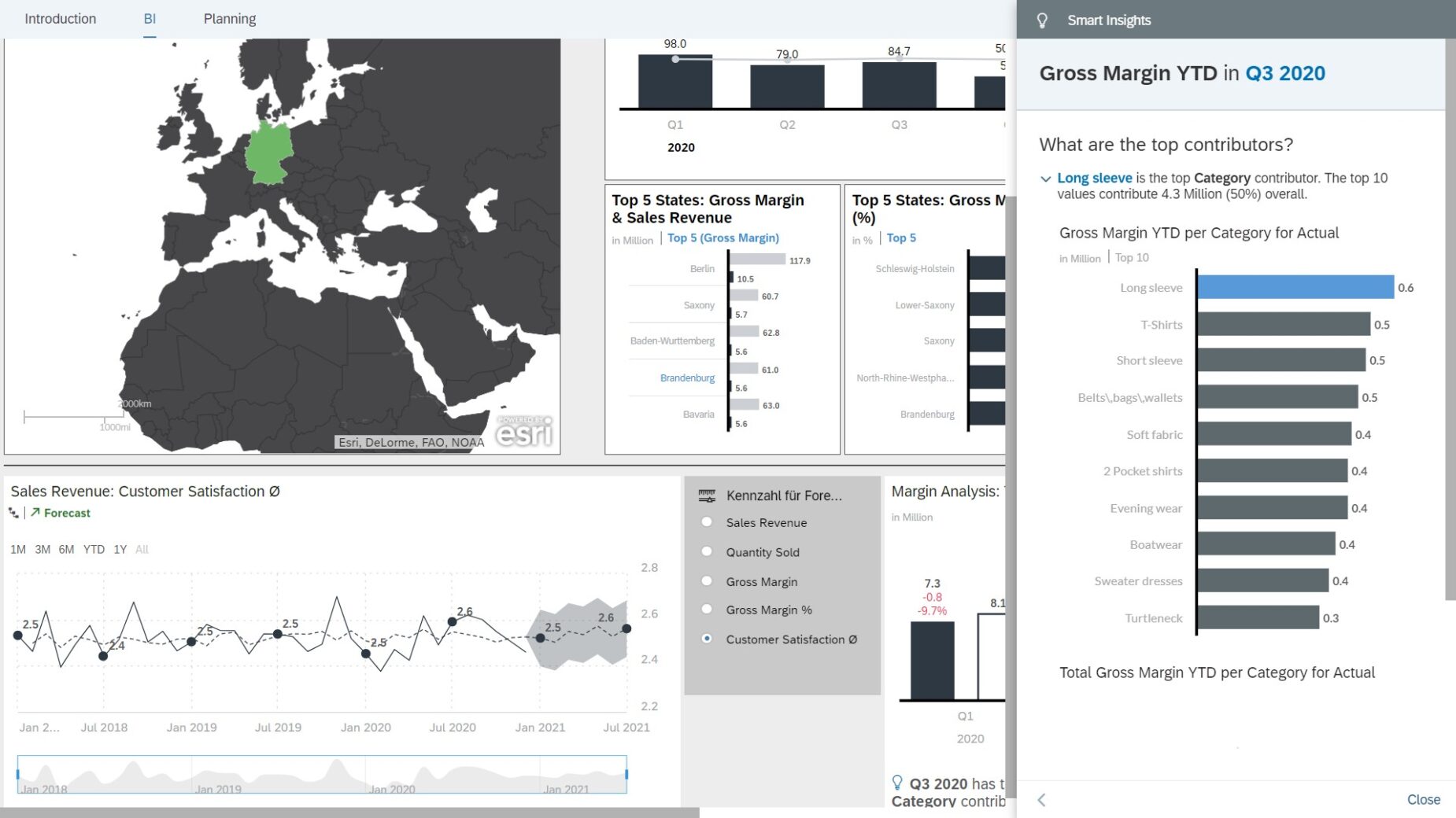 Con la solución como herramienta de análisis y planificación, no sólo podrá informar sobre cifras, sino también generar perspectivas. Si quieres tomar decisiones, necesitas hechos e información en formas y visualizaciones claras. Por muy compleja y compleja que sea la trayectoria de los datos desde tu recopilación hasta la elaboración de informes, al final lo que importa es una visualización clara y significativa. Aquí es donde los clientes confían en IBCS. Además, las funciones de aprendizaje automático Smart Discovery y Smart Insights integradas en SAP Analytics Cloud ayudan mucho en los análisis. Los nuevos insights pueden fluir directamente a tus modelos de planificación o utilizarse para previsiones y comparaciones objetivo-real, de modo que siempre puedas mantener un ojo en el status quo de tu empresa y aumentar tu velocidad de reacción.